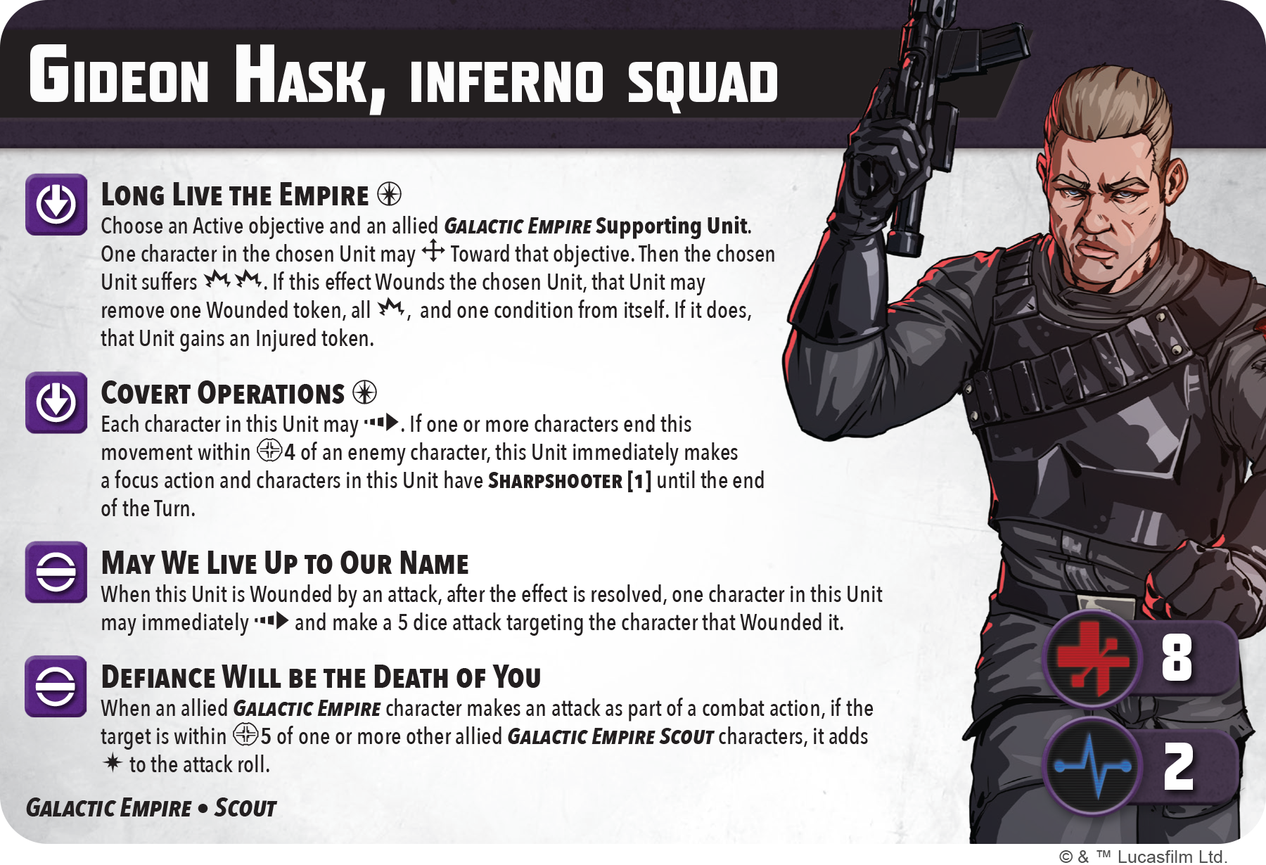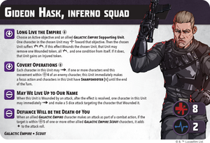 Amid the aftermath of one of its greatest defeats, the Empire unleashes one of its most elite units to defend its interests! Leading Inferno Squad, the skilled pilot, unconventional tactician, and survivor of the Death Star's destruction, Iden Versio, is supported by Gideon Hask, a man of ruthless determination and unshakeable loyalty to the Empire. Together with the rest of Inferno Squad, they've proven their mettle in numerous covert actions, carrying out assassinations and rapid strikes to safeguard the Empire’s most vital secrets.