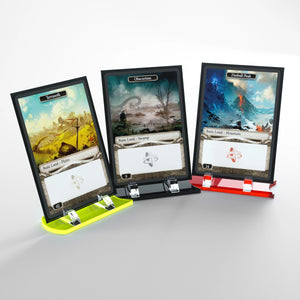 These colorful Card Stands are perfect for holding your cards during a variety of games or to display your favorite cards. Hold almost all gaming cards (sleeved and unsleeved). During gameplay, the Card Stands can be used to keep a card’s information hidden from others or to increase a card’s visibility for other players. The ingenious, alignable design allows the Card Stands to be positioned in a colorful line or a (half-) circle.