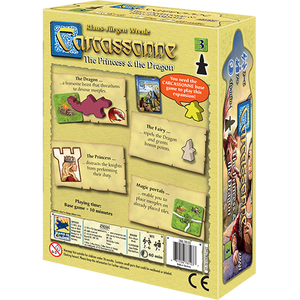 Enter a realm of chivalry and sorcery with this Carcassonne expansion. The Princess sends knights out to perform acts of chivalry; meanwhile, a fearsome dragon threatens followers unprotected by the magic of the fairies! The Princess & The Dragon expansion introduces princesses, dragons, fairies, and other storybook elements that add surprising wrinkles to your Carcassonne game. You can use thirty new tiles to unleash a dragon that devours anyone in its path, summon a fairy to protect your followers, or remove rival knights from a city. No matter what tile you draw, you’ll have plenty of options to disrupt your opponents’ plans and claim more points for yourself.