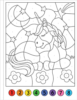 - This sturdy colouring book features 50 pages of colour-by-number unicorn pictures.