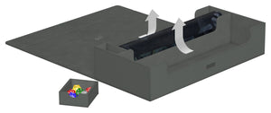 This ultimate box leaves nothing to be desired! There is space for everything you will need, with compartments for multiple card decks and cases, two play-mats and accessories like dice, tokens and life counters!
