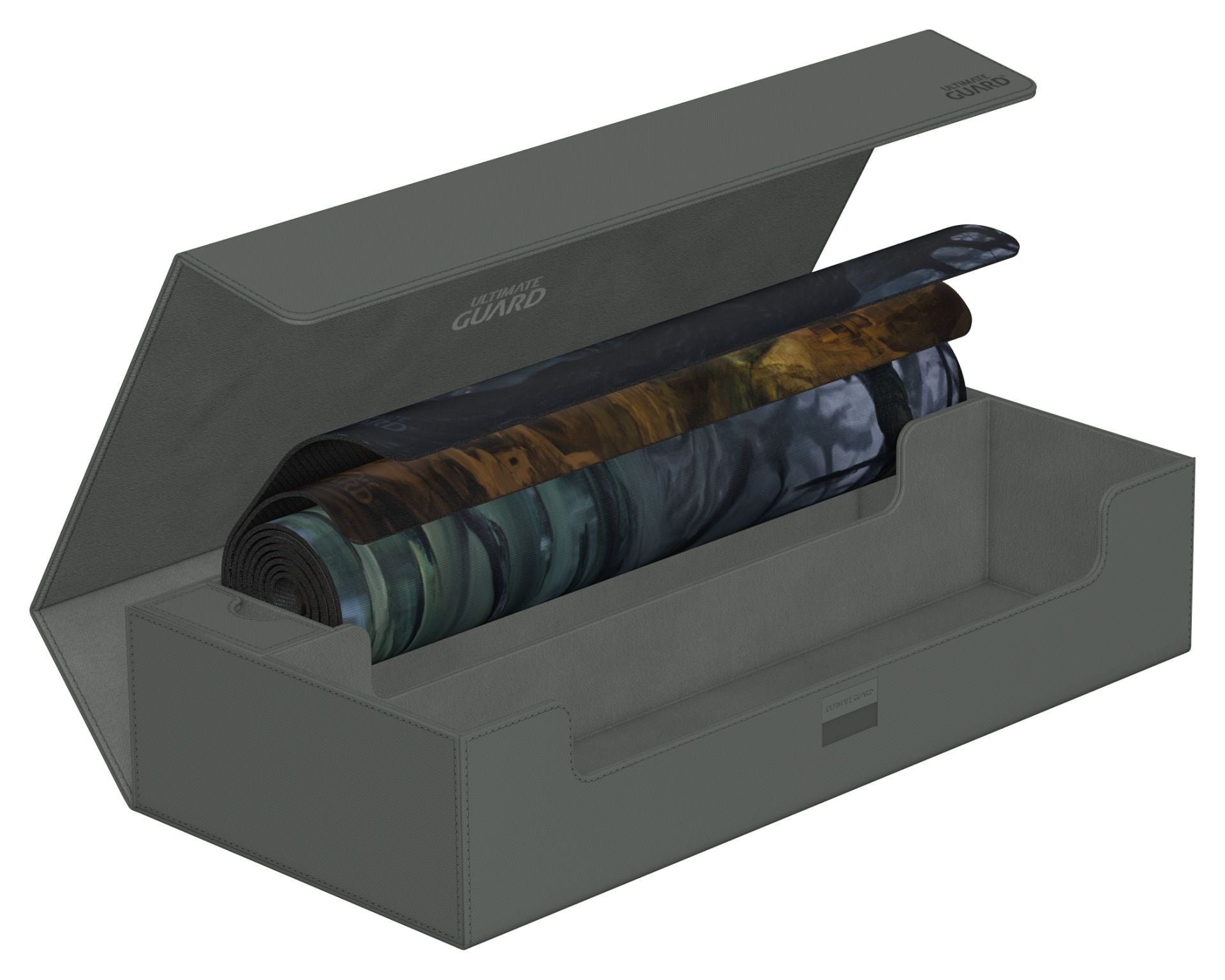 This ultimate box leaves nothing to be desired! There is space for everything you will need, with compartments for multiple card decks and cases, two play-mats and accessories like dice, tokens and life counters!