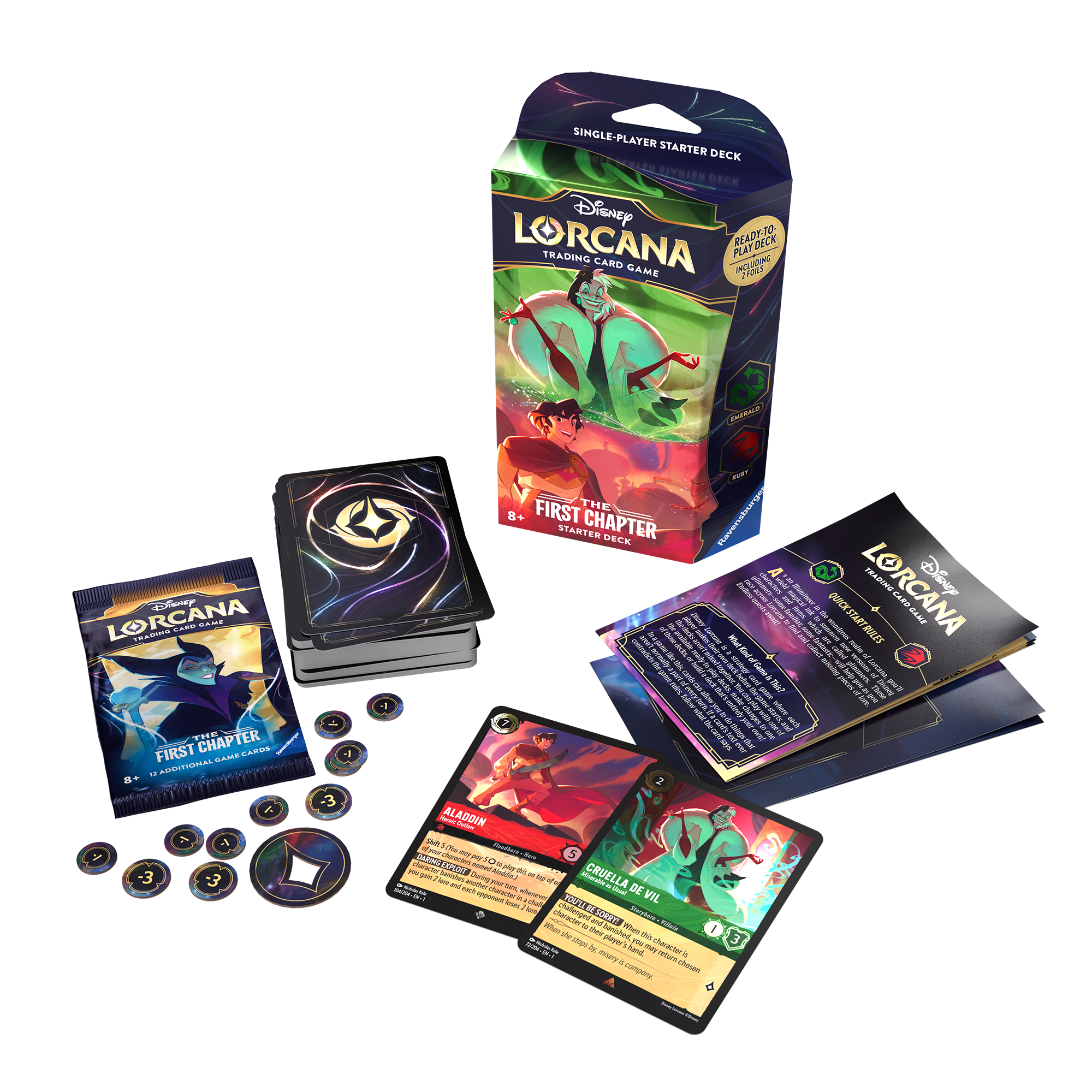 Each Disney Lorcana starter deck includes everything a player needs to start playing against another player who has their own deck. Through these decks, players get a taste of the rich story and varied characters of Disney Lorcana.