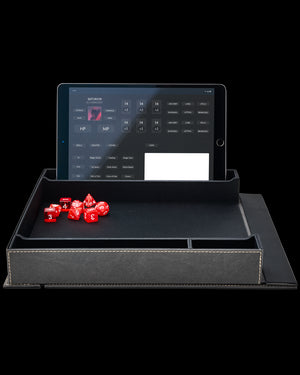 Do you use digital character sheets on a mobile phone or tablet? Use the included foam blocks and place them in the miniature compartment to rest at the perfect viewing angle while playing. The Companion can be folded if table space is tight.