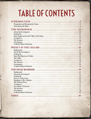 Gateways to Terror contains three short-play scenarios for the Call of Cthulhu 7th Edition roleplaying game, ideal for beginning and experienced players and Keepers alike. Originally, all three — The Necropolis, What's in the Cellar? and The Dead Boarder—were designed as demonstration games to give a taste of the game's core motifs—mystery, investigation, and horror—for those with limited time. The scenarios can be played in as little as one hour but can be expanded for slightly longer play, and each comes with four ready-made investigators so you can jump right into the action! Each scenario includes hints and tips for Keepers new and old, suggestions for additional investigators for larger groups, and a summary of the key rules needed to play.
