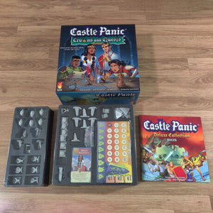 Originally offered on Kickstarter, Crowns and Quests Deluxe is an upgraded collector’s edition of the latest expansion, Crowns and Quests. King Aiden, Queen Seraphina, and the other loyal defenders of Castle Bravehold must fight to save the kingdom from sinister new threats.