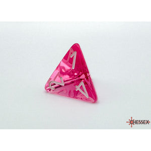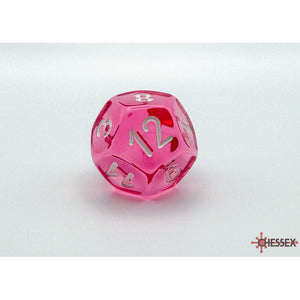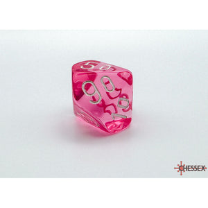This set contains 7 Translucent Pink dice with white numbers with the following shapes: