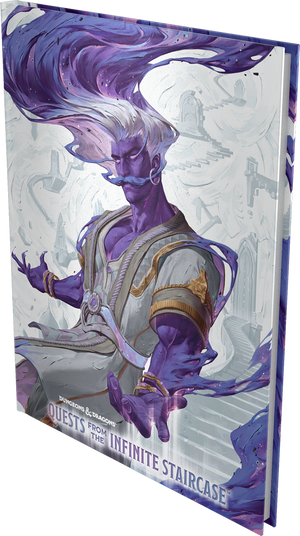 Quests from the Infinite Staircase embraces the magic of the most beloved Dungeons & Dragons adventures of all time. Your journey begins in the Infinite Staircase, a dreamlike expanse with doors leading to fantastical worlds, where you’ll meet Nafas, a noble genie who fulfills wishes with the help of valiant heroes—like you! As you explore what lies beyond each door, embark on timeless adventures and make memorable moments with your party. This handpicked collection contains 6 remastered first edition adventures, complete with striking settings and a lovable cast of characters. These unforgettable quests can be run individually or as a delightful campaign that takes characters from level 1 to 13.