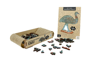 Make a fun puzzle of a elegant emu with a fun Australian colour palette.