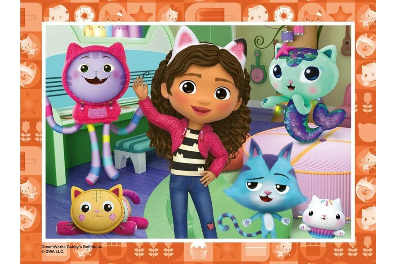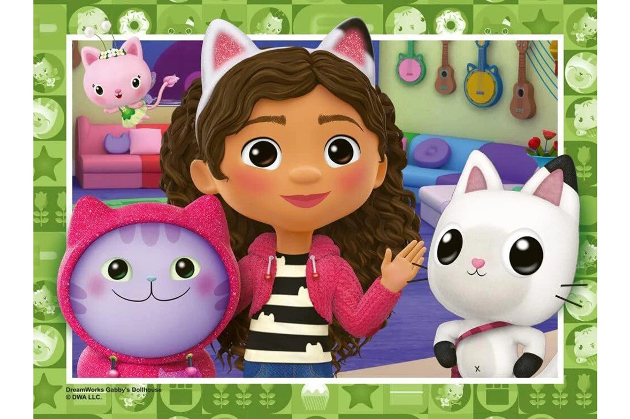 Prepare for magical adventurees as you complete these four, bright and colourful puzzles! Join Gabby, DJ Catnip, Kitty Fairy and Pandy Paws as they confide in DJ Catnip to help get them out of troublesome situations. Then get creative with the Box Cat family, in the craft room - be careful though, watch out for the playful foil that is Catrat! Head outdoors to the Fairy Tail garden to see Kitty Fairy and explore what the luscious magical garden has to offer. Or head for a jamming session in the music room with DJ Catnip, Mercat, Pillowcat, Cakey Cat and Catrat - the adventures are endless in Gabby's Dollhouse!