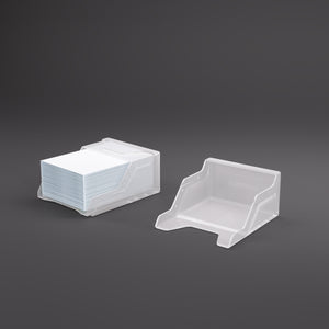 “If you’re gonna stand, stand like a Bastion!”– The Bastion 50+ is a very compact and rock-solid deck box to safely protect 50+ double-sleeved cards in Closable Inner Sleeves. It is ideal for decks with 55+ double-sleeved cards in standard inner sleeves. Due to translucent materials and smart positioning of the closing flaps, the top card is fully visible from the outside without opening the box. The innovative secure click-lock mechanism protects your deck while still allowing easy access. The Bastion consists of 2 symmetrical parts that easily convert into a card pile and discard pile holder. It is perfect for a huge variety of trading card games. Thanks to its modular design, the Bastion fits perfectly into other Gamegenic products. It also comes with a write-on sticker for personalization. The Bastion is available in 10 different colors, including an exclusive mix & matched black/clear version.