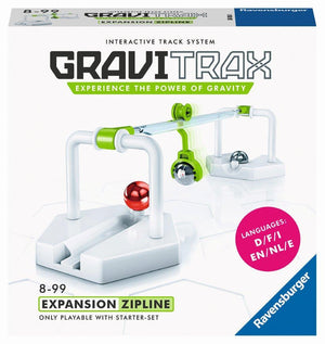The Zipline connects track sections to overcome long distances and varying elevations. Combine the Zipline with the GraviTrax Starter-Set for spectacular gliding action.