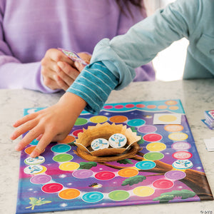 Players help the owls fly back to their nest before the sun comes up. Play a color card and fly to that space. Draw a sun card, and you’re one step closer to the daylight. Help all the owls get home before the sun rises and everyone wins! The game is easy enough for first time game players and the game can be made infinitely more challenging simply by adding more owl tokens into the game. This allows the game to age with the child or for older kids (or adults) to play with younger kids.
