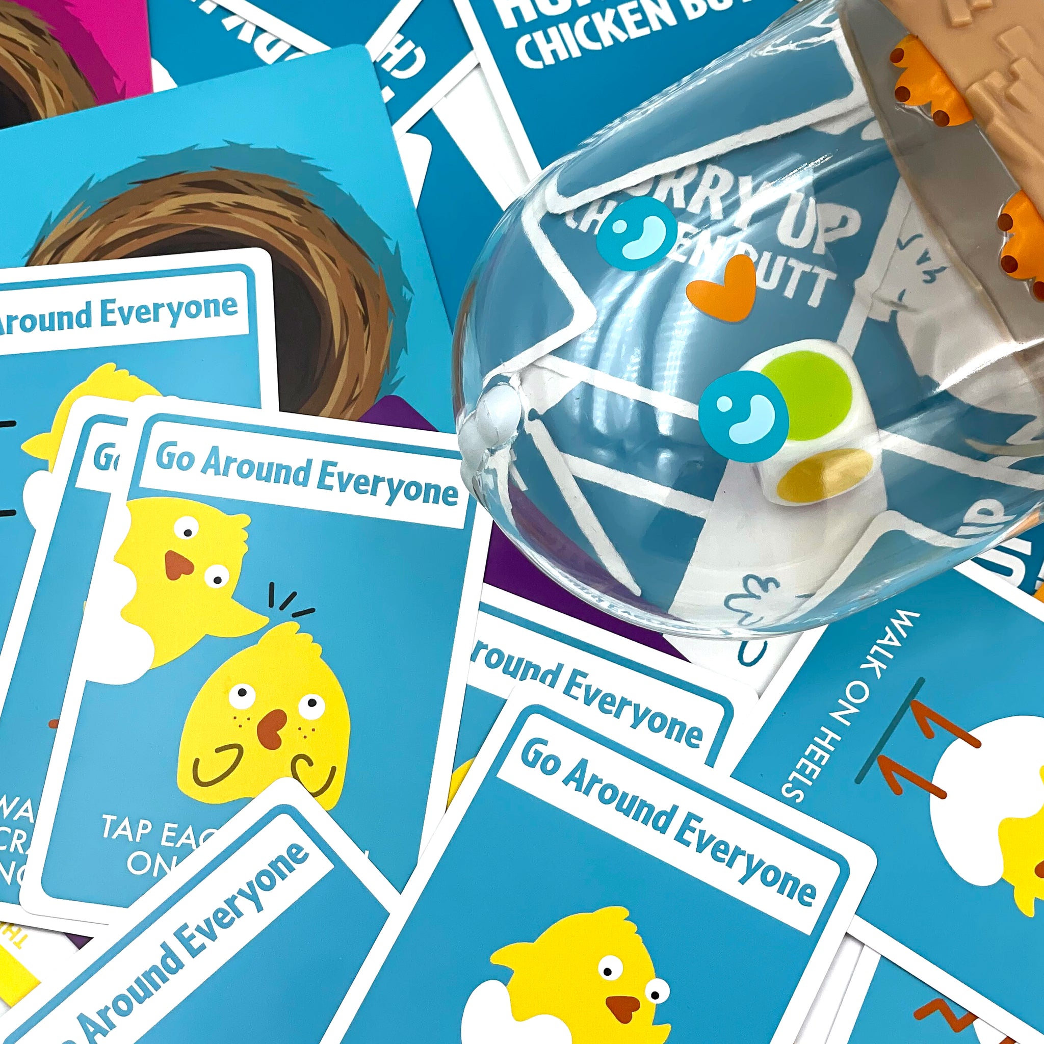 60 physical activity cards you have to perform before passing the Chicken Shaker. You won't let your kids win, but they will beat you anyway.
