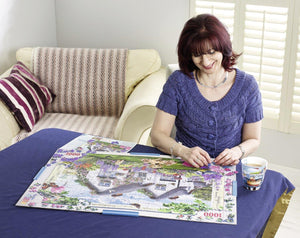 Puzzle Handy is a foldaway puzzle board, suitable for assembling most 1000 and 500 piece jigsaws. Manufactured from top quality FSC board, Puzzle Handy unfolds to measure 80 x 57cm. Assembly is simple: just unfold the board, add one of the plastic securing brackets on each side to make the board rigid, and start your puzzle! Puzzle Handy is printed with a neutral non-glare background colour, and includes dotted guidelines showing the approximate finished sizes of Ravensburger 500 and 1000 piece puzzles (49 x 36cm and 70 x 50cm respectively). Use the guidelines to help you ensure your puzzle is centrally located on the board, which can be a great help with the jigsaw building process. When you've finished your puzzle and want to put the Puzzle Handy away, just remove the securing brackets, refold the board and pop it back into the storage box provided!