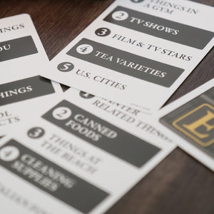 Start by drawing a Category Card and a Letter Card. Then set a 60-second timer and start shouting! The goal is to shout a word that fits the Category Card and starts with one of the letters on the Letter Card. When you’ve gotten the word, flip a new Letter Card. Repeat this chaotic process until time, or your vocal cords run out.