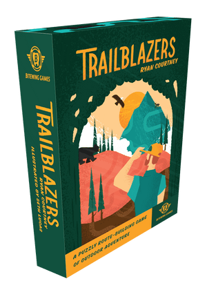 Trailblazers is a simultaneous drafting, route-building game where players construct their own network of hiking, biking, and kayaking trails. Trail cards can even be overlapped, giving you the freedom to blaze routes however you please. Just be careful not to push-your-luck too far… only trails that loop back to camp will score points!