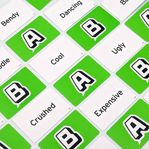 Card game for families, adults, and friends that folds loads of challenges. Discover strange and hilarious word cards in this party games like "Wobbly Hamster."