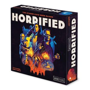 A city Scream in Terror! A cooperative game against the worlds most famous monsters. The village is under attack! Dracula, The Mummy, Frankensteins Monster, his Bride, and more are on the rampage, and your team of heroes must defeat them. Each monster offers an entirely unique challenge, and players can adjust the difficulty by playing against a new group of adversaries every game! Overcome them all before the horror overwhelms you! Watch the Gameplay overview at Ravensburger.com/HorrifiedGame.