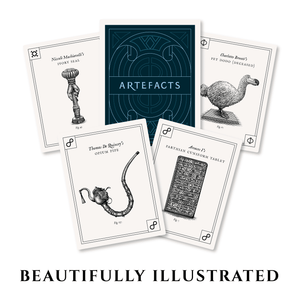 - Players take a Character card, draw questions and earn Artefacts to attain glory in this beautifully designed and hand-illustrated game for 2-6 people. Play lasts between 30-40 minutes.