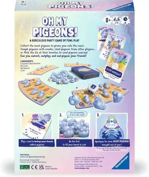 On your turn, use your cards to tempt pigeons with snacks, steal pigeons from your neighbors, or leave it up to fate when you roll – or flick?! — the die. Can you outwit, outplay, and out-pigeon your friends?