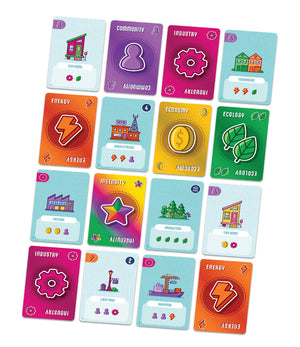 The rules are simple: Take two adjacent cards from the dynamic city grid and add them to your expanding city. Use your resource cards and bonuses to construct building cards that require specific combinations. Build special civic structures to multiply your city's points and be the top urban planner!