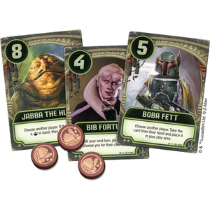 Based on the beloved card game and set in the Star Wars galaxy, Star Wars: Jabba’s Palace - A Love Letter Game retains the simple and fun mechanics of the original as you utilize the talents of iconic characters from Return of the Jedi. Players take turns using the elegant “draw a card, play a card” gameplay and then executing the card’s effect. Cards include characters like Luke Skywalker, Boba Fett, Salacious Crumb, Jabba the Hutt, and many more, with each card offering different effects, such as Boba Fett allowing you to take a card from another player, or Salacious Crumb allowing you to look at another player’s hand.