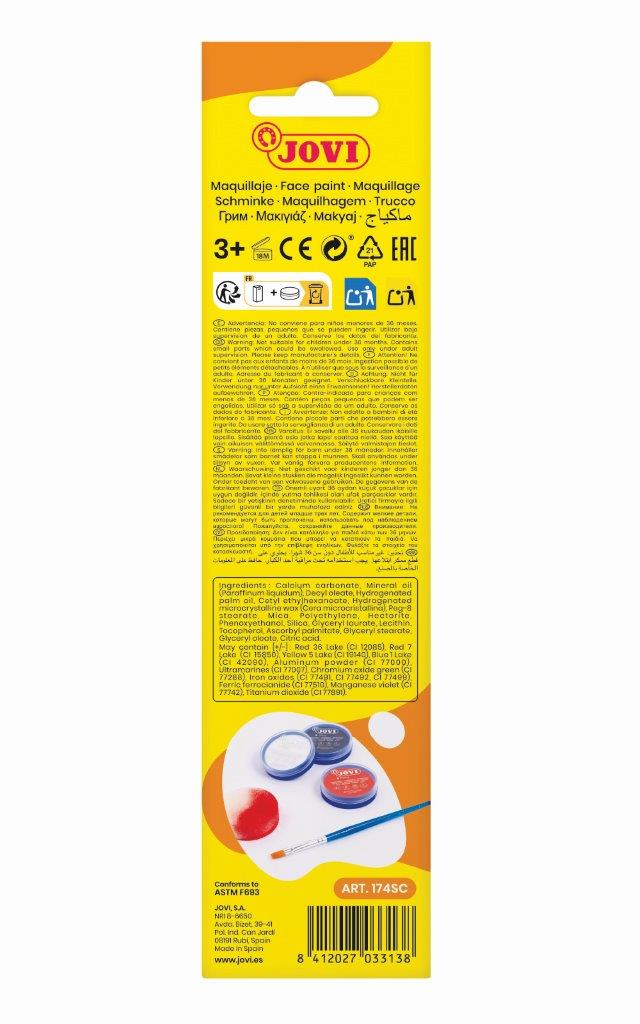 JOVI Face Paint is an oil-based, easy-to-apply, waterless cream face paint.