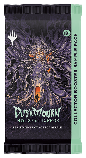 - COLLECT SPECIAL TREATMENT CARDS—Each deck also comes with a 2-card Collector Booster Sample Pack containing 2 cards from the Duskmourn: House of Horror set, including 1 alt-border Rare or Mythic Rare and at least 1 Traditional Foil card