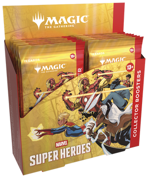 Hold the power of the Marvel Universe in your hands when you open Magic: The Gathering | Marvel Super Heroes Collector Boosters. Collector Boosters are the ultimate way to add unique and exclusive cards to your collection; tons of foils, special card treatments, rares and/or mythic rares, and more await you inside every pack. Each booster may contain Collector Booster-exclusive card treatments, like extended-art cards or even an ultra-rare headliner card featuring a special foil treatment.