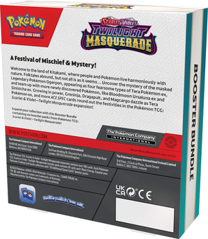 Expand your collection with this Booster Bundle containing six booster packs from Pokémon TCG: Scarlet & Violet—Twilight Masquerade!