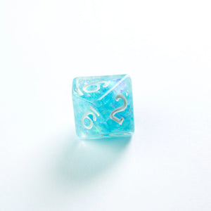 Choose your weapon! This dice set contains a D4, a D6, a D8, two D10 (10 and 00), a D12 and a D20. All dice are round-cornered and manufactured at a premium level. The Candy dice are infused with beautiful glitter flakes. They are packed in a window cardboard box that displays all dice at the front.