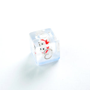 Choose your weapon! This dice set contains a D4, a D6, a D8, two D10 (10 and 00), a D12 and a D20. All dice are round-cornered and manufactured at a premium level. The Embraced Dice have an interesting item inside the cube and will make your game night a critical hit. They are packed in a window cardboard box that displays all dice at the front.