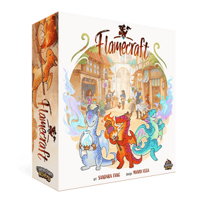 In Flamecraft, 1-5 players take on the role of Flamekeepers, gathering items, placing dragons and casting enchantments to enhance the shops of the town. Dragons are specialized (bread, meat, iron, crystal, plant and potion) and the Flamekeepers know which shops are the best home for each. Visit a shop to gain items and a favor from one of the dragons there. Gathered items can be used to enchant a shop, gaining reputation and the favors of all the dragons in the shop. If you are fortunate enough to attract fancy dragons then you will have opportunities to secure even more reputation.