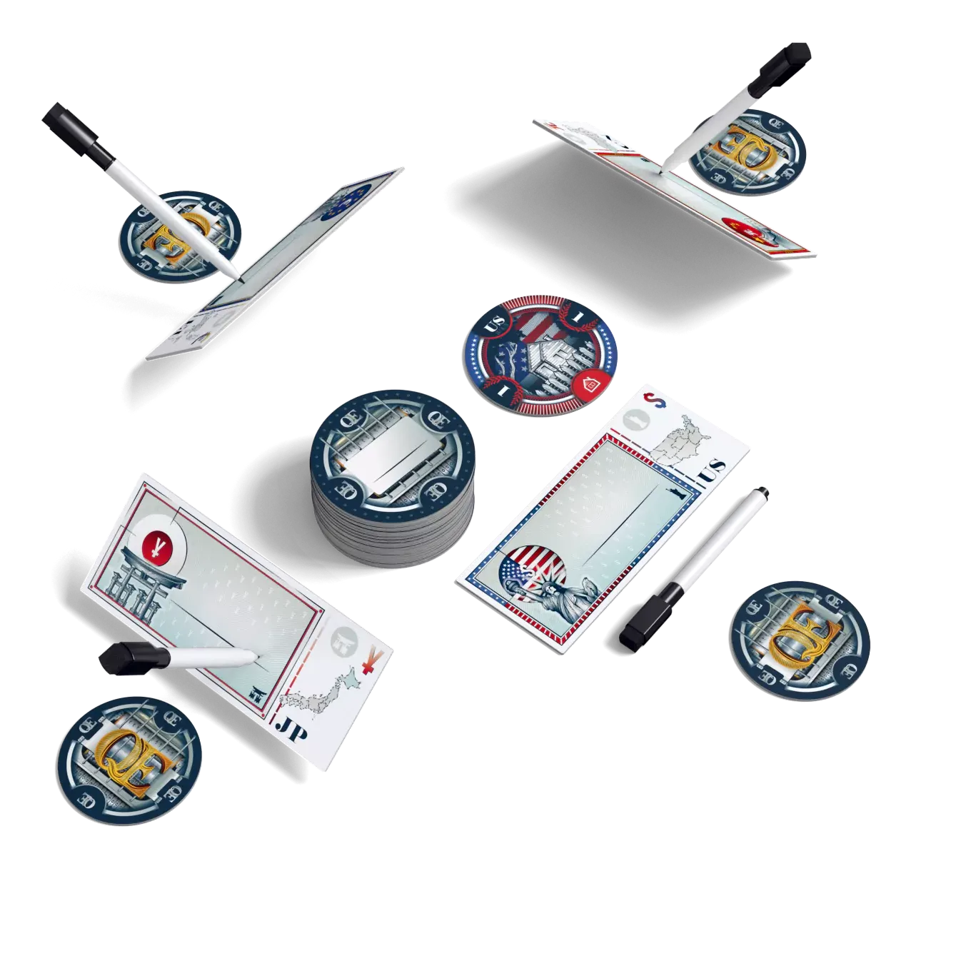With the global economy crashing, enact QE (Quantiative Easing) measures and start printing that money! Careful—if you print the most, you lose!