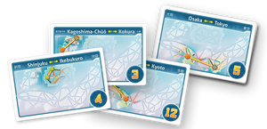 Ticket to Ride Map Collection: Volume 7 – Japan & Italy includes a double-sided game board — the longest yet in the Map Collection series — that features Japan on one side and Italy on the other. In the Japan half of the expansion, some routes are reserved for the Bullet Train network, and once such a route is claimed, it can be used by all players to complete destination tickets. To claim such a route, discard a number of cards equal to the length of the route with all the card being the same color, then mark the route with a single Bullet Train miniature; instead of scoring points for such a route, advance your marker on the separate Bullet Train track as many spaces as the length of this route. At the end of the game, whoever has contributed the most to this shared project receives the largest bonus, with the player who contributes least being penalized. This game board also has a small inlay for the Tokyo subway system, so players are effectively working on two networks at once. You might have a ticket that lists a city outside Tokyo and a station with Tokyo, and you need to complete a route from that other city to Tokyo, then from the central Tokyo station to that particular subway station. In Italy, the game board is divided into regions, and players score bonus points based on how many regions they connect in their network, with three regions — Sardegna, Sicilia, and Puglia — counting as two regions in your tally. If you have separate networks, then you score each one separately. The board also introduces a new type of ferry route. On this game board, all gray routes are ferry routes, with these routes having 1-4 spaces marked with a wave symbol. To cover a wave symbol, you must play a locomotive or a ferry card from your hand (in addition to the other cards needed to claim this route); a ferry card is a special type of card that can be drafted on its own on your turn, and it contains two wave symbols, so it can be used on its own to cover two symbols on a route. The player trains and game cards from Ticket to Ride or Ticket to Ride: Europe are needed to play this expansion.