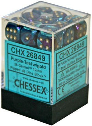 - 36 × 12mm D6 Chessex 6-sided dice in a clear plastic box