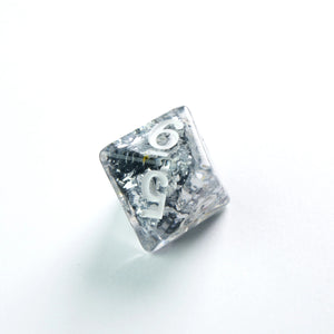 Choose your weapon! This dice set contains a D4, a D6, a D8, two D10 (10 and 00), a D12 and a D20. All dice are round-cornered and manufactured at a premium level. The Candy dice are infused with beautiful glitter flakes. They are packed in a window cardboard box that displays all dice at the front.