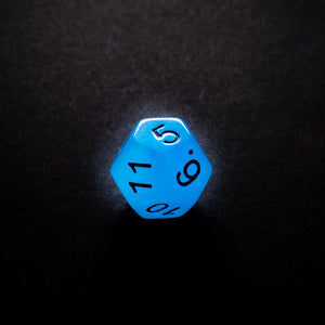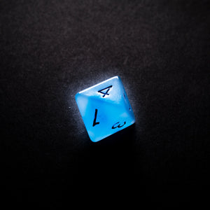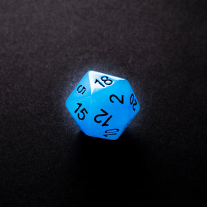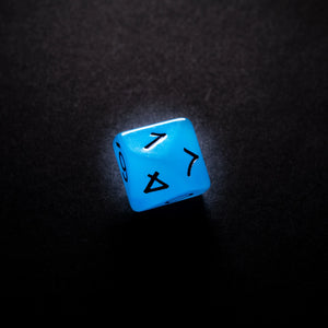 Choose your weapon! This dice set contains a D4, a D6, a D8, two D10 (10 and 00), a D12 and a D20. All dice are round-cornered and manufactured at a premium level. The dice from the Glow dice set glow in the dark and won’t let the light go out on your adventure. They are packed in a window cardboard box that displays all dice at the front.