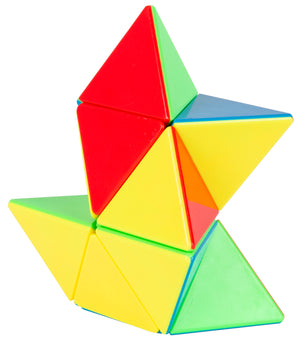 Tetrahedral shaped brain teaser starts looking like a pyramid but quickly changes with each turn. Twist to change shape & colour, then solve to get all sides the same colour!
