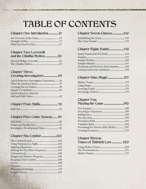 This book, the Keeper Rulebook, contains the core rules, background, guidance, spells, and monsters of the game. It is intended for use by the Keeper of Arcane Lore (the Keeper) — that player who will present the adventure to the other players. You must have at least one copy of this book to play Call of Cthulhu. The other players, the Investigators, should have one or more copies of the Investigator Handbook, containing expanded rules for character creation, skills, occupations, equipment, and more.