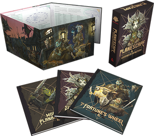 - Turn of Fortune’s Wheel (96-page hardcover adventure)—An adventure set in Sigil and the Outlands designed for characters levels 3–10 with a jump to level 17