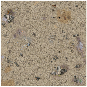 This pack contains a 3′ x 3′ / 90cm x 90cm gaming mat depicting a barren desert with cracked earth and scattered debris. It is printed in high quality on fabric with a 1mm neoprene backing. It can be combined with similar mats to make a larger battlefield and can be rolled or folded for easy storage.