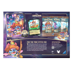 For the true Stitch fan, this collector’s gift set offers a bounty of ways for players to bring more of their favourite mischievous alien to their game! The unique portfolio covered in Stitch glimmers is perfect for storing treasures like this foil Stitch promo card, which shines with a special water-like treatment. Also included are 4 Azurite Sea booster packs that will add nearly 50 cards to a player’s collection. Who knows what glimmers they’ll find?