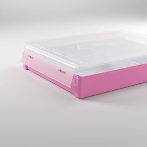 “Are you ready for a revolution in token boxes?” Save precious space on your board game table with our revolutionary, convertible, Token Silo. Just clip the cover to the bottom of the box for easy access to all your tokens. This unique, convertible box stores and organizes a variety of tokens, cards, dials, dice, and many other items. The Token Silo comes with 9 trays in 3 different sizes, that are fully removable to keep your accessories handy during the game. The boxes can be stacked several times and are made of durable, robust material. It is available in several vibrant colors which can be mixed and matched.