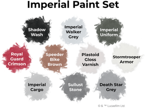 Bring your Star Wars: Legion army to life with the Imperial Paint Set! This set includes 10 colors essential to depicting the troopers and vehicles of the Galactic Empire—including one wash and one gloss coat for adding rich depths of shading and a finishing touch to your miniatures, making it the perfect entry point for the beginning miniatures painter.