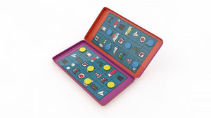 Compact and chique, a variety of 25 classic board games designed in a slim tin case, printed both sides with magnetic pawns and pieces. Fun and affordable travel games, for all ages.