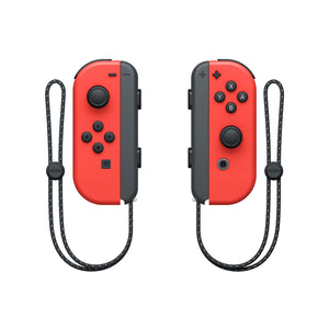 Warp into a world of games with the Nintendo Switch™ – OLED Model: Mario Red Edition system. The system features a console, dock, and Joy-Con™ controllers all in the iconic Mario Red color. A silhouette design of Mario jumps into action on the back of the dock. Look closely, and you’ll also find some hidden coins!