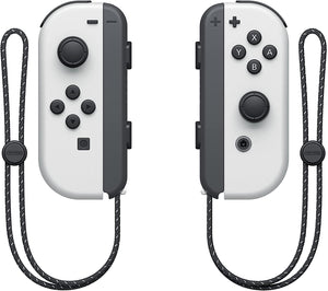 - Nintendo Switch (OLED model) white set, which features White Joy-Con controllers, a black main unit and a white dock.