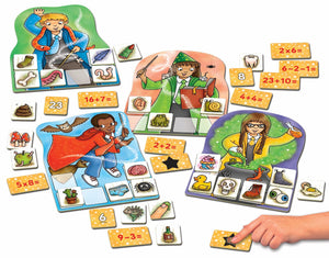 Players take turns to solve the sums and fill their boards with yucky spell ingredients, from worm-infested cupcakes to brains and bogies! Once players have worked out the answer to the sum, the magic begins...by turning over their card and rubbing the heat sensitive patches to reveal if their answer is correct.